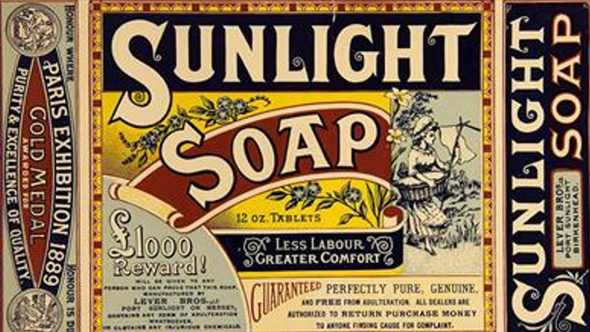 Later, in het noorden van Engeland in het midden van de jaren tachtig van de negentiende eeuw, begon een succesvolle familiegroothandel in kruidenierswaren onder leiding van William Lever met het produceren van een nieuwe huishoudzeep. Het product bevat kopra of pijnboompitolie zodat het makkelijker gaat schuimen dan traditionele zeepproducten gemaakt van dierlijke vetten. Lever heeft de zeep een merknaam – Sunlight – en verkoopt het verpakt in aparte pakketten, iets dat voor die tijd nieuw is.